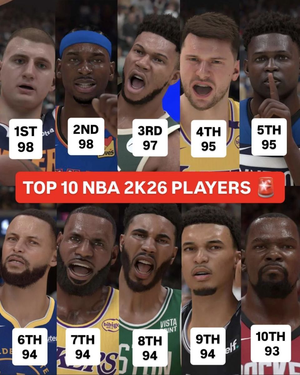 有时候不仅看数量,还要看质量。欧洲杯的整体水平,其实要强于篮球世界杯!2K26能力值前四的球员,有三个征战此次欧洲杯(约基奇、字母哥和东契奇)。前四名当中另外一个是亚历山大,加拿大球员,不过他缺席了美洲杯。